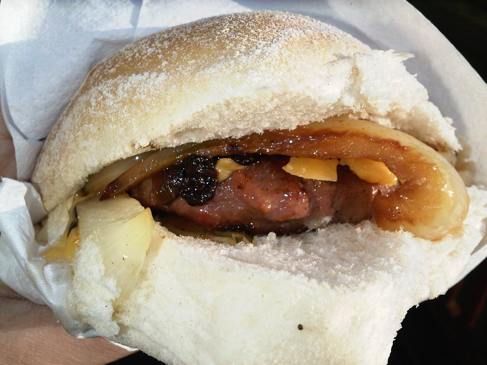 This experience was quite different to what we’d got from the Balmoral Beef Gourmet Burger Van, the other day. Where the Balmoral was a flat, wide burger, topped with a range of relishes and salad items, what we had here was a smaller, chunkier burger, that relied on the cheese and onions to add condiment detail.